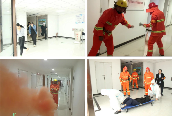 在消防演練階段,指揮部按照應(yīng)急預(yù)案,迅速行動,組織調(diào)度應(yīng)急搶險組、安全保衛(wèi)組、人員疏散組、醫(yī)療救護(hù)組分頭行動,完成人員撤離、現(xiàn)場滅火、傷員救治等系列工作。各小組組配合行動井然有序,迅速完成各項模擬任務(wù),達(dá)到預(yù)期成效。