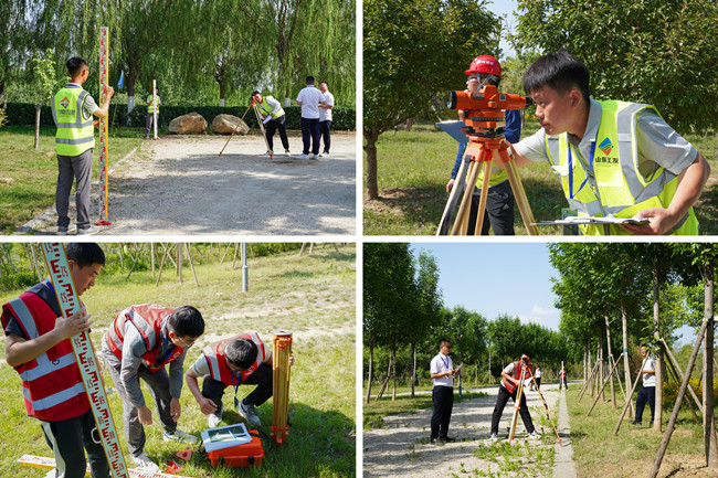 測量職業(yè)技能競賽采取理論與實(shí)際操作相結(jié)合的考試形式。理論考試主要考察工程測量相關(guān)職業(yè)技能知識掌握情況,實(shí)際操作考察四等水準(zhǔn)測量操作水平。10支代表隊參賽。賽場上,各隊相互比拼,激烈角逐,隊員分工明確,迅速架設(shè)水準(zhǔn)儀,手握水準(zhǔn)尺不停跑位,測距搬站、觀測讀數(shù)、記錄計算,全力比拼、爭分奪秒,展現(xiàn)了城建速度和精益求精的鐵軍風(fēng)采。