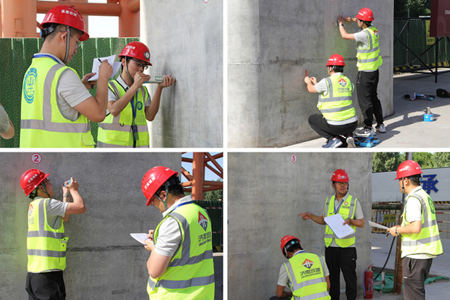 試驗檢測技能競賽采取理論與實(shí)際操作相結(jié)合的考試形式。理論考試與實(shí)際操作緊密相關(guān),主要考察混凝土抗壓強(qiáng)度檢測(回彈法)和鋼筋保護(hù)層厚度檢測(電磁感應(yīng)法)。10支代表隊,20名參賽選手參加競賽。賽場上,參賽選手們嚴(yán)格按照標(biāo)準(zhǔn)要求,現(xiàn)場選擇測區(qū)(測點(diǎn)),正確率定回彈設(shè)備,熟練地操作先進(jìn)儀器設(shè)備,一絲不茍讀取并記錄數(shù)據(jù)、現(xiàn)場計算并處理數(shù)據(jù)、判定檢測結(jié)果,充分展現(xiàn)了城建鐵軍在工程建設(shè)上精益求精,“質(zhì)”在必得的匠人風(fēng)采。