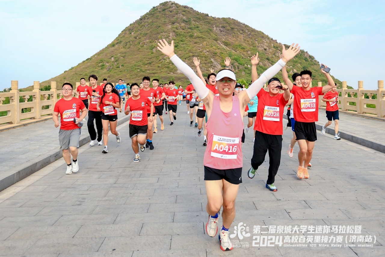 “泉”在濟(jì)南,逐夢奔跑。6月16日,第二屆泉城大學(xué)生迷你馬拉松暨2024高校百英里接力賽(濟(jì)南站)在濟(jì)南華山湖景區(qū)成功舉行,來自全國的43支高校隊(duì)伍、86組運(yùn)動(dòng)員參賽,5000余名大學(xué)生及校友會(huì)成員參加了迷你馬拉松。
