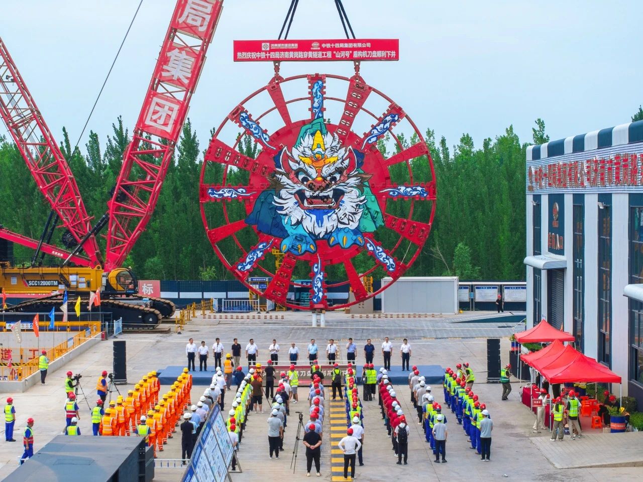 早稻田大學(xué)名譽(yù)教授、山東大學(xué)講席教授小泉淳,中國工程院院士、西南交通大學(xué)副校長何川,建設(shè)集團(tuán)黨委書記、董事長許為民,中鐵十四局集團(tuán)總經(jīng)理周長進(jìn),盾構(gòu)施工專家學(xué)者,各參建單位負(fù)責(zé)同志參加吊裝儀式。