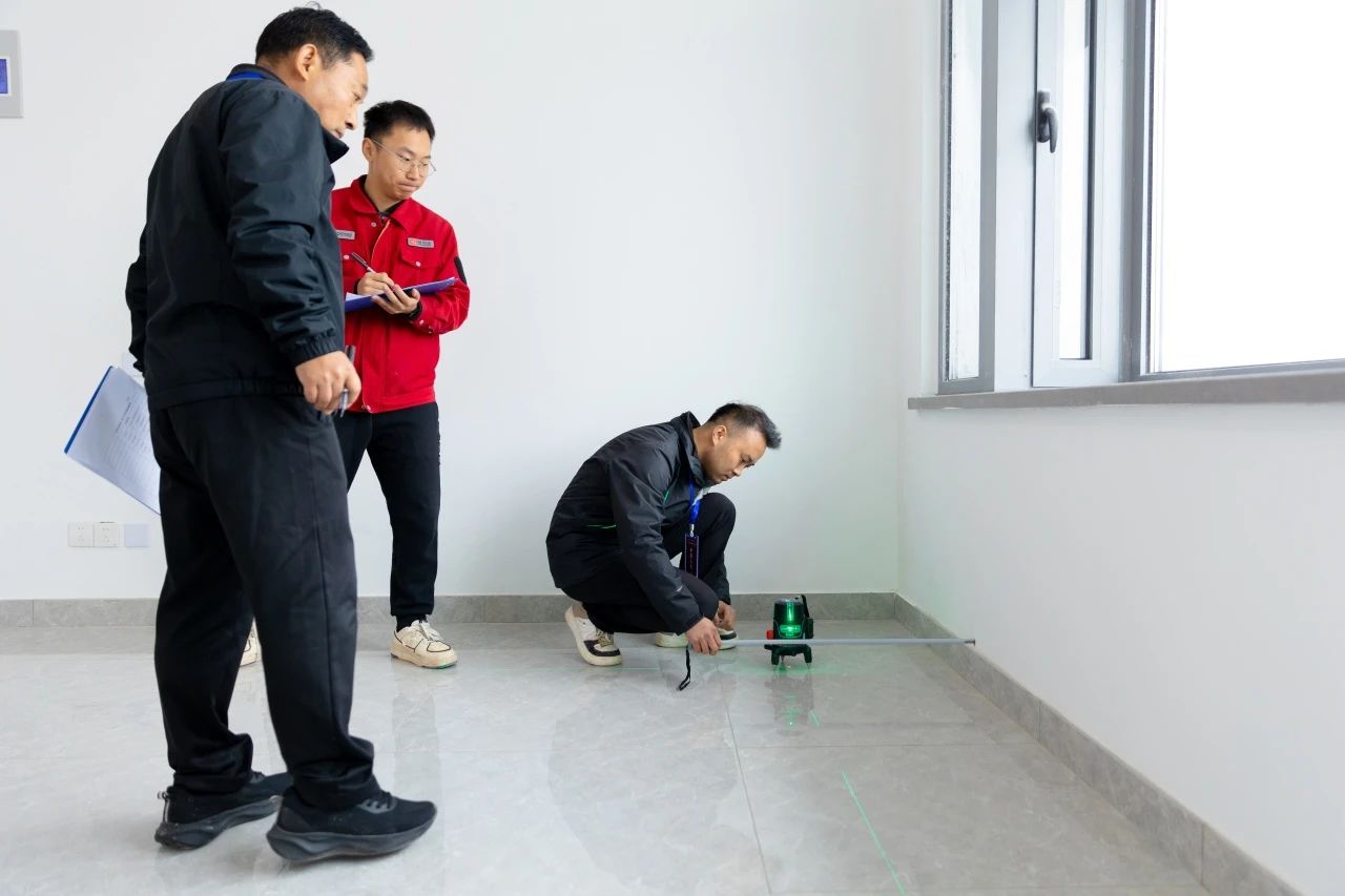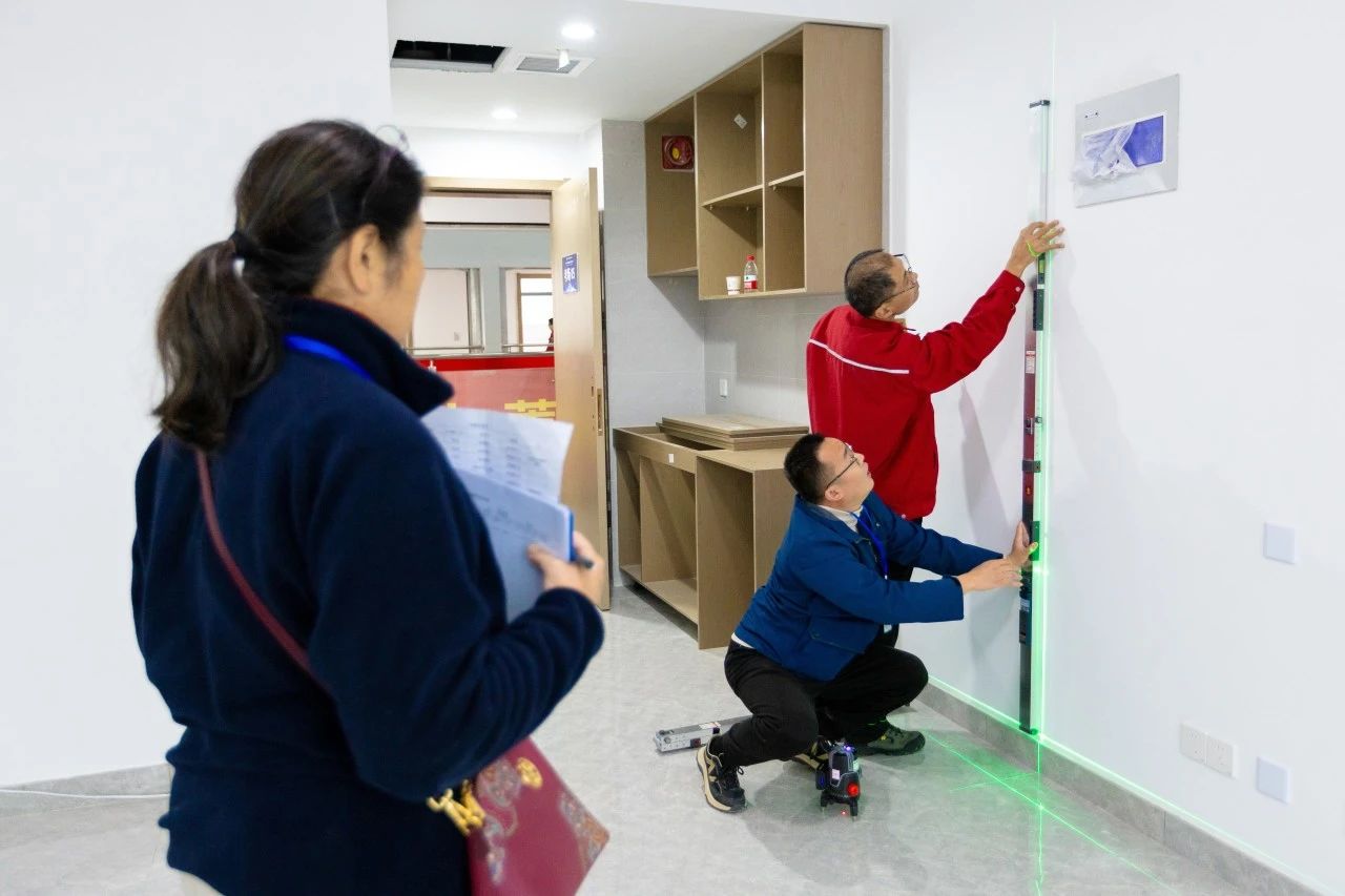此次競賽立足行業(yè)實際工作場景,多維度、全方位地檢驗參賽選手的質(zhì)量檢驗專業(yè)知識和技能水平,設(shè)置理論考核和實際操作兩部分。理論競賽內(nèi)容包括法律法規(guī)、工程測量相關(guān)規(guī)范基礎(chǔ)知識等,實操比賽涵蓋了房建工程裝飾階段的測量。