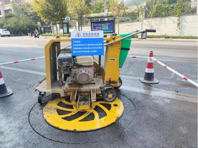 濟(jì)南市大辛河和巨野河排水分區(qū)雨污分流項(xiàng)目部積極使用井蓋自動(dòng)割圓機(jī),提升割縫的精度和效率,開啟智能機(jī)械化施工。