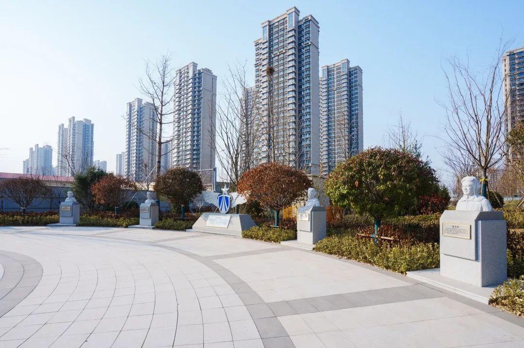 在公園南地塊紀(jì)念廣場,通過展示張莊機場原駐扎部隊6位空軍戰(zhàn)斗英雄的雕像和英雄事跡,以及“空中鐵拳精神”展示,傳承紅色基因。