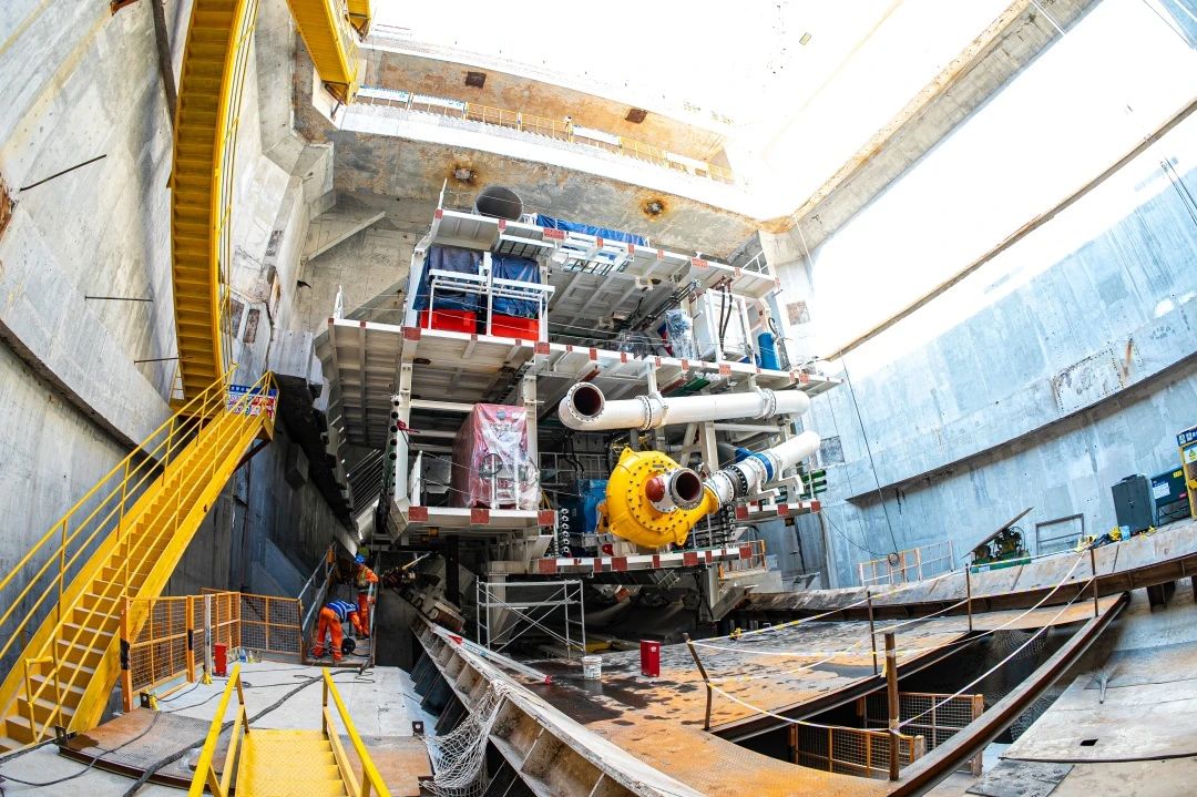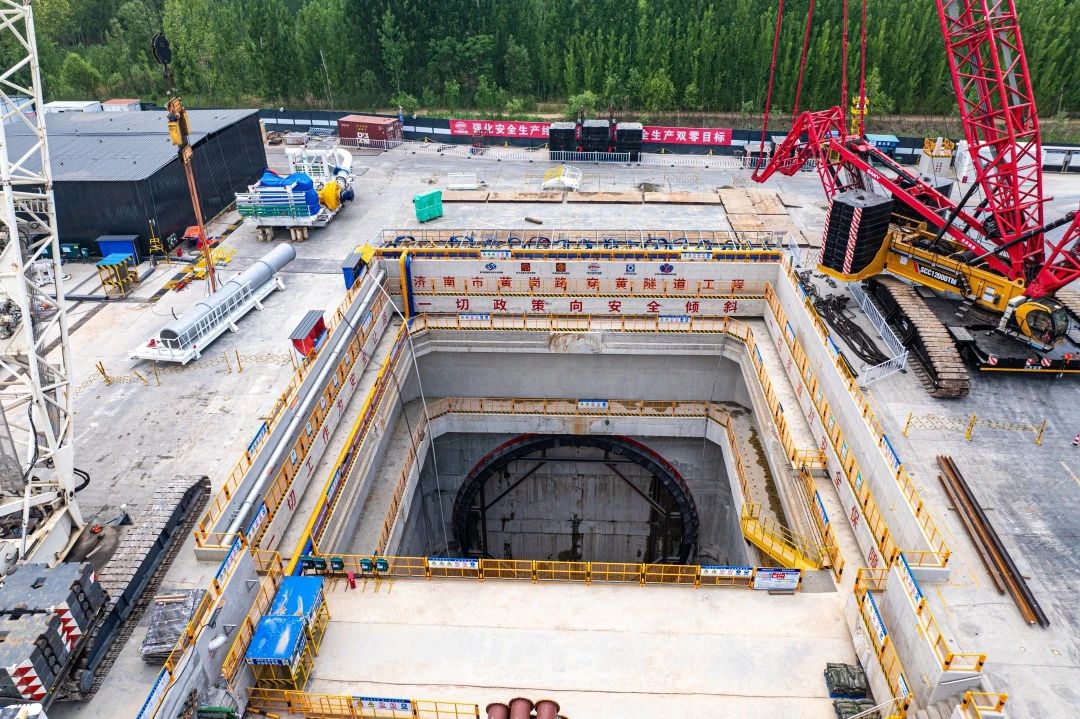 近日,由濟(jì)南城市建設(shè)集團(tuán)負(fù)責(zé)建設(shè)的濟(jì)南市黃崗路穿黃隧道工程迎來又一重要節(jié)點(diǎn),世界在建最大直徑水下泥水平衡盾構(gòu)“山河號”盾構(gòu)機(jī)首件完成吊裝下井,開始拼裝施工,項(xiàng)目計(jì)劃9月份實(shí)現(xiàn)盾構(gòu)始發(fā)。
