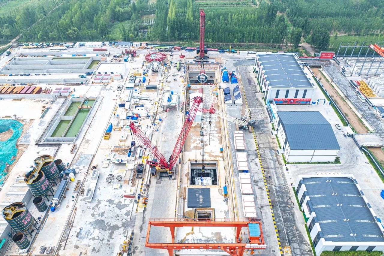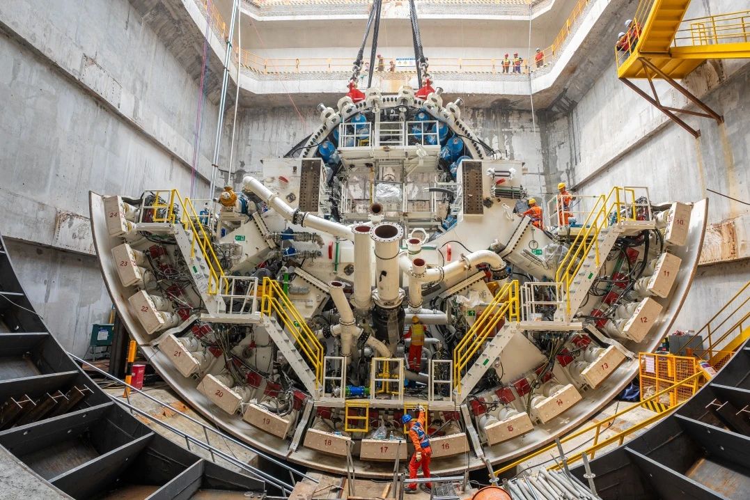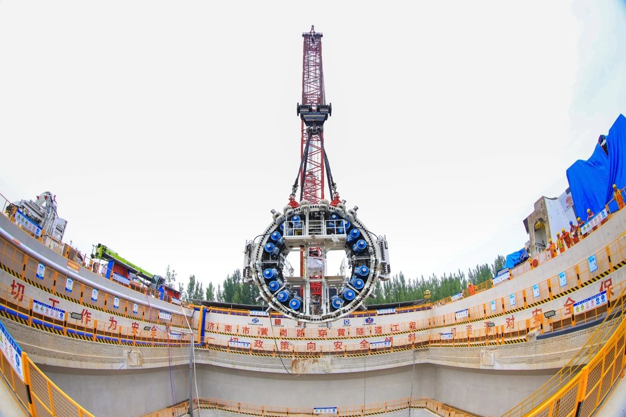工程所采用的“山河號”盾構機,是世界在建最大直徑泥水平衡盾構機,最大開挖直徑17.5米,總長163米、重達5200噸、裝機總功率12580千瓦,裝配各類刀具306把,其中57把可實現(xiàn)滾刀齒刀互換,刀盤開口率53%,最大限度滿足掘進所面對的復雜地層,盾構機總裝達到世界先進水平。
