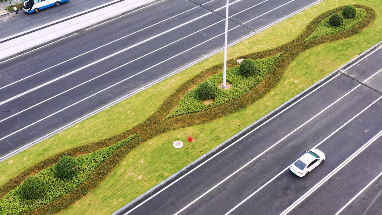 高架橋上采用了創(chuàng)新性非線性排水溝,兼顧橋面排水需求,造價低,施工簡單,耐久性好。道路周邊精心設(shè)計(jì)了綠植造型,下穿隧道采用了藍(lán)色星空頂,園林小品的愜意和藍(lán)色星空隧道的靚麗,為濟(jì)南機(jī)場增添了一抹亮色。在后續(xù)的規(guī)劃中,還將有車輛隧道下穿停機(jī)坪,未來,上行飛機(jī)、下行車輛,飛機(jī)和汽車將實(shí)現(xiàn)“空陸同框”。