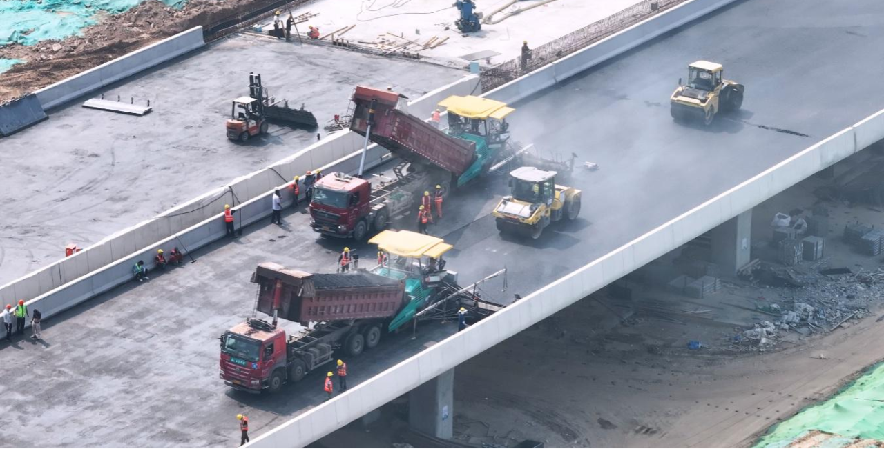 主進(jìn)場路工程涉及單位多、施工組織難、工期要求緊。全體參建人員牢固樹立“樹精品、保安全、促飽和”的建設(shè)理念,全力克服工程導(dǎo)改復(fù)雜、作業(yè)面受限、不停航施工、交叉作業(yè)等困難,科學(xué)制定技術(shù)處理方案,壓茬謀劃作業(yè)時序,統(tǒng)籌推進(jìn)機(jī)場運(yùn)行、拆遷導(dǎo)改、交通通行、高鐵建設(shè)與主進(jìn)場路建設(shè)。