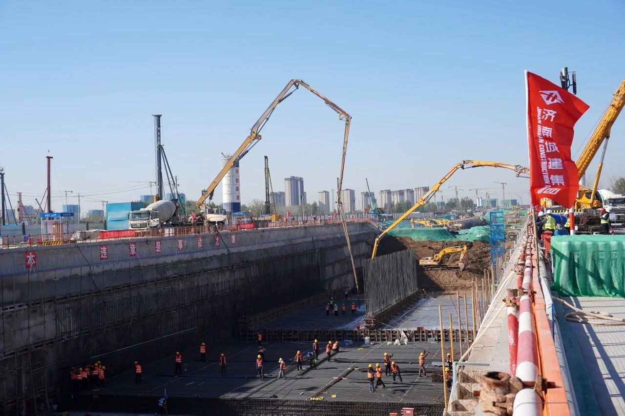 11月6日,由建設(shè)集團受委托建設(shè)的濟南新舊動能轉(zhuǎn)換起步區(qū)黃河體育會展及科技智造園區(qū)基礎(chǔ)設(shè)施(黃河大道二期)工程迎來關(guān)鍵節(jié)點,濟南城建集團公司施工一標段完成首件底板混凝土澆筑,為全線首段完成底板混凝土澆筑的標段。
