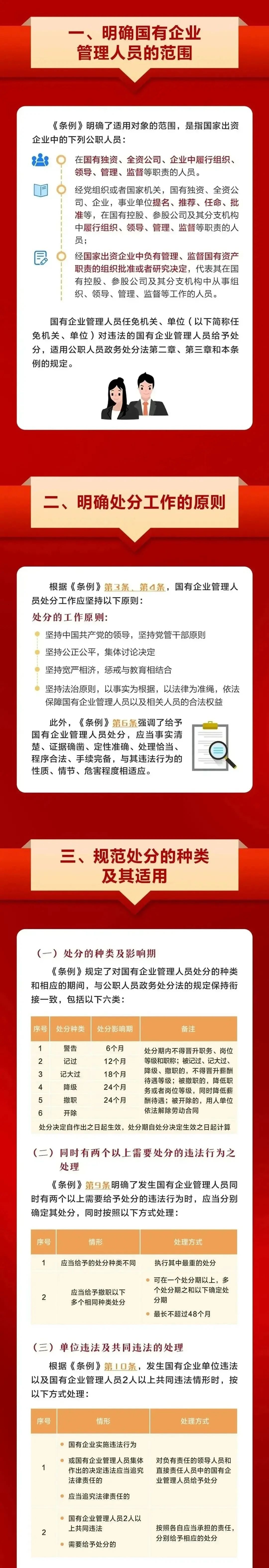 2024年4月26日,國務(wù)院第31次常務(wù)會議通過《國有企業(yè)管理人員處分條例》(以下簡稱《條例》),自2024年9月1日起施行?!稐l例》共7章52條,包括總則、處分的種類和適用、違法行為及其適用的處分、處分的程序、復(fù)核與申訴、法律責(zé)任、附則等。