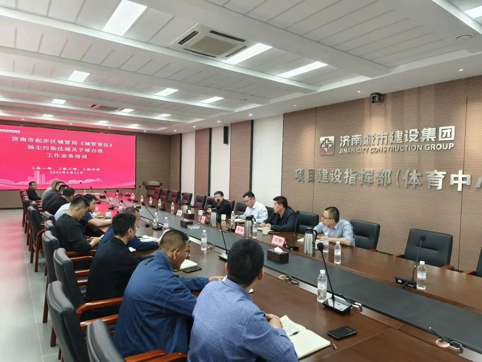 為進(jìn)一步規(guī)范現(xiàn)場(chǎng)施工作業(yè),強(qiáng)化施工揚(yáng)塵污染的防控措施,推動(dòng)我市空氣質(zhì)量持續(xù)改善,積極助力藍(lán)天保衛(wèi)戰(zhàn),近日,建設(shè)集團(tuán)在黃河體育中心項(xiàng)目舉辦揚(yáng)塵污染法規(guī)及手續(xù)辦理工作業(yè)務(wù)培訓(xùn)會(huì)。會(huì)議邀請(qǐng)到起步區(qū)綜合執(zhí)法部、城市管理辦公室相關(guān)同志進(jìn)行授課,工程一部、工程二部及工程四部項(xiàng)目負(fù)責(zé)人、安全管理人員等40余人參加了此次會(huì)議。