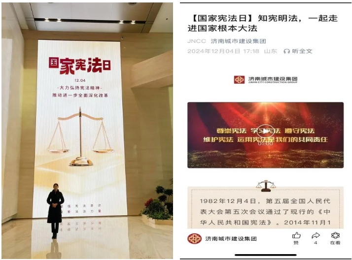 2024年12月1日至7日是全國第七個(gè)憲法宣傳周,集團(tuán)根據(jù)《濟(jì)南市2024年國家憲法日、憲法宣傳周、法治宣傳教育月活動(dòng)實(shí)施方案》要求,認(rèn)真開展了2024年憲法宣傳周活動(dòng),結(jié)合實(shí)際工作,大力加強(qiáng)習(xí)近平法治思想、憲法與新《公司法》的學(xué)習(xí)宣傳,積極引導(dǎo)集團(tuán)廣大干部職工尊法學(xué)法守法用法,推動(dòng)法治宣傳教育走深走實(shí)。
