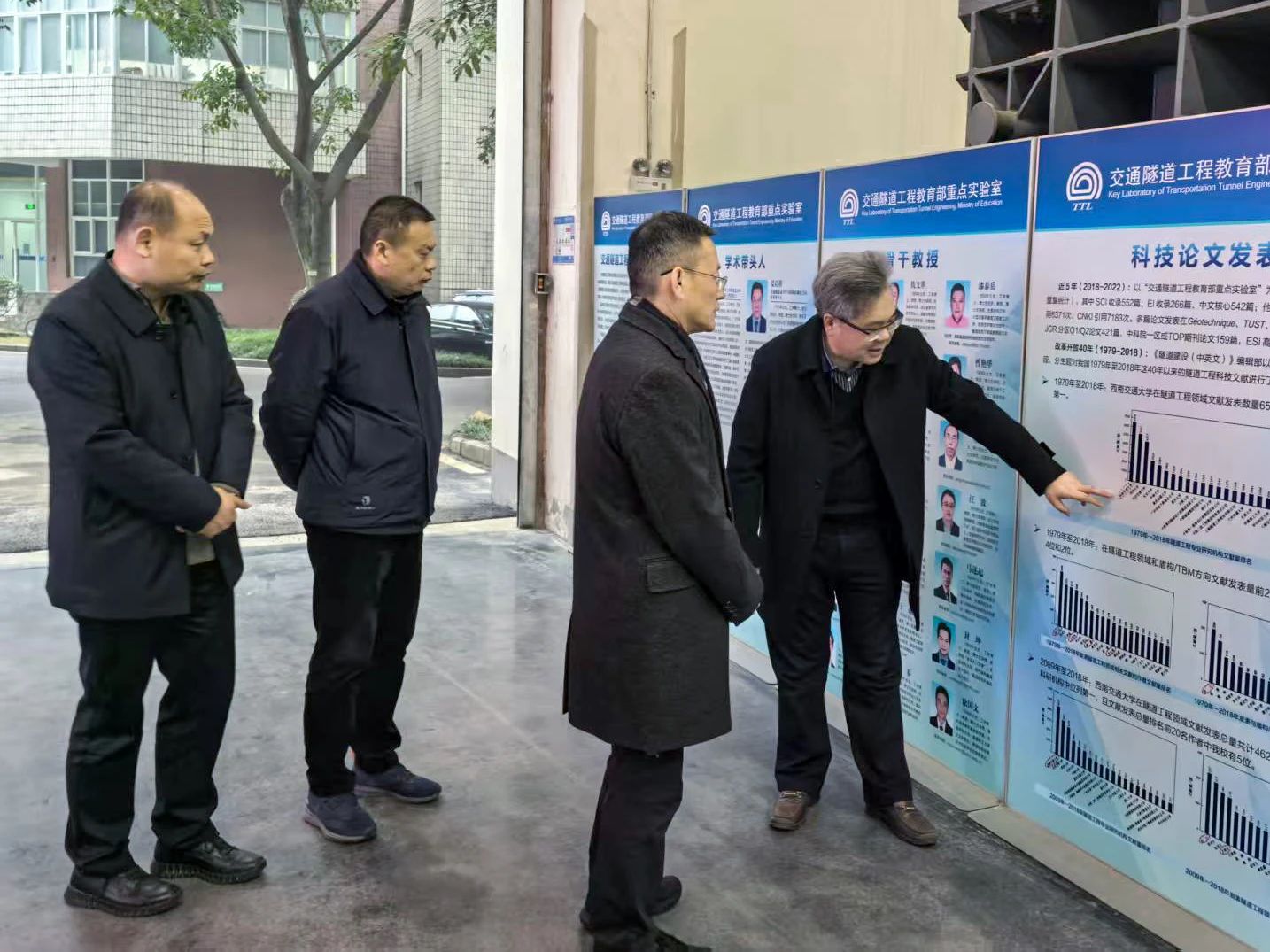 許為民一行參觀了極端環(huán)境巖土和隧道工程智能建養(yǎng)全國重點(diǎn)實(shí)驗(yàn)室,詳細(xì)了解實(shí)驗(yàn)室的發(fā)展歷程、師資結(jié)構(gòu)、科研成果以及運(yùn)行與管理機(jī)制等情況,并與實(shí)驗(yàn)室負(fù)責(zé)人就相關(guān)問題進(jìn)行交流和探討。
