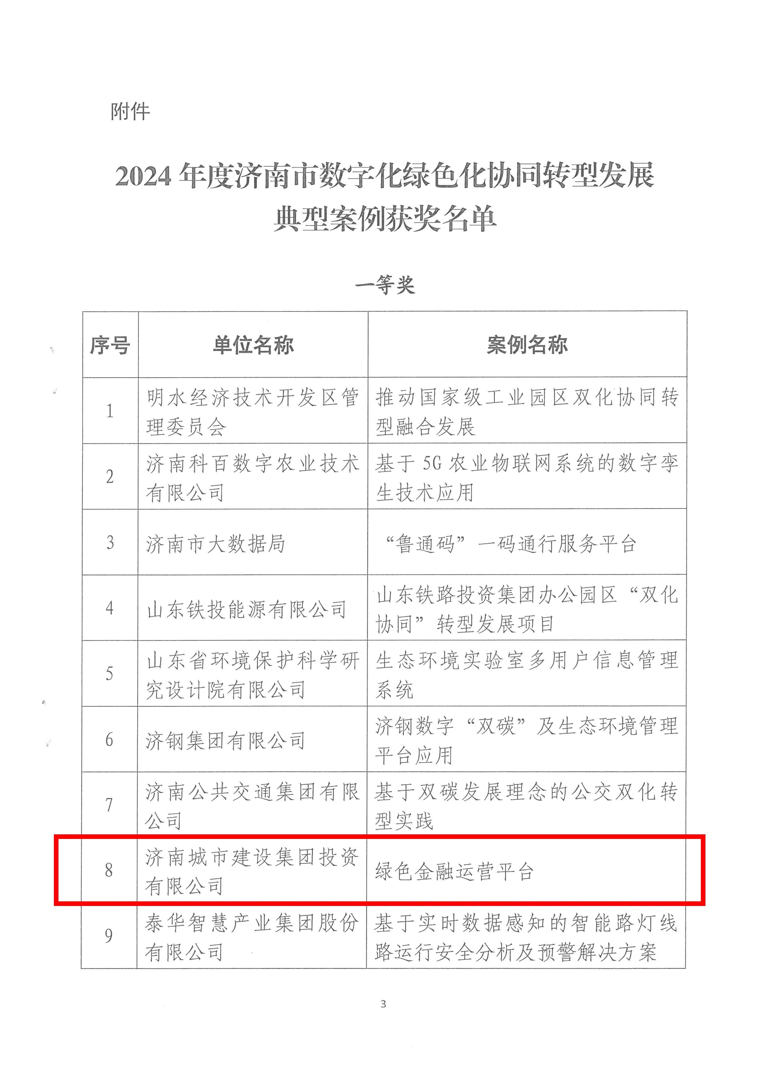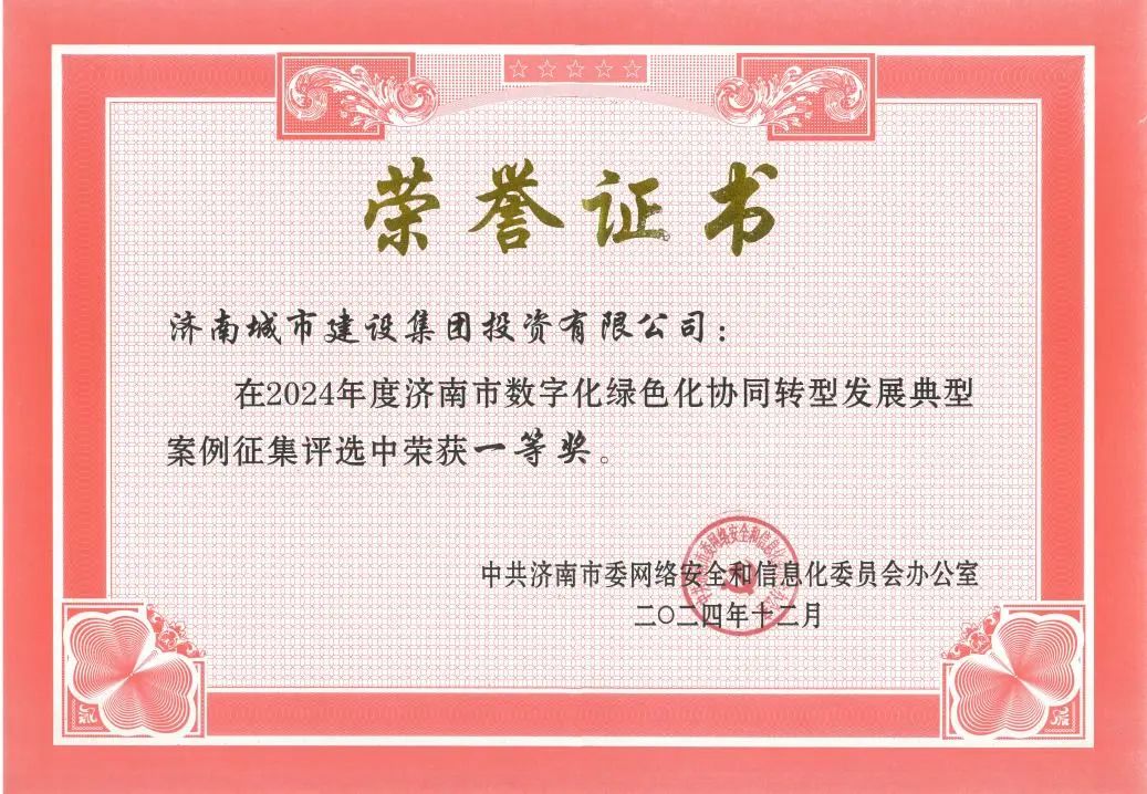 近日,濟(jì)南市委網(wǎng)信辦公布了《2024年度濟(jì)南市數(shù)字化綠色化協(xié)同轉(zhuǎn)型發(fā)展典型案例獲獎(jiǎng)情況的通知》。經(jīng)過嚴(yán)格的考察、評審與公示,建設(shè)集團(tuán)所屬濟(jì)南城市建設(shè)集團(tuán)投資有限公司提交的“綠色金融協(xié)同賦能平臺(tái)”案例在眾多參評項(xiàng)目中脫穎而出,榮獲一等獎(jiǎng)。