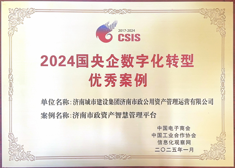 市政資產公司建設的“濟南市政資產智慧管理平臺”榮獲“2024國央企數(shù)字化轉型優(yōu)秀案例”