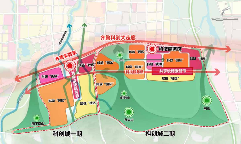 中科院科創(chuàng)城位于濟(jì)南市規(guī)劃的齊魯科創(chuàng)大走廊,是未來(lái)產(chǎn)業(yè)創(chuàng)新圈的重要組成部分,與產(chǎn)研院創(chuàng)新圈、超算中心創(chuàng)新圈、山東大學(xué)創(chuàng)新圈共同構(gòu)建“基礎(chǔ)創(chuàng)新+技術(shù)創(chuàng)新+轉(zhuǎn)化應(yīng)用”的創(chuàng)新生態(tài)鏈。其中,一期重點(diǎn)布局重大科技基礎(chǔ)設(shè)施、前沿交叉研究平臺(tái)及國(guó)家級(jí)、省級(jí)實(shí)驗(yàn)室;二期則突出科技賦能轉(zhuǎn)化,加強(qiáng)與大院大所合作,建設(shè)新型研發(fā)機(jī)構(gòu)和科創(chuàng)載體,助力濟(jì)南創(chuàng)建“綜合性國(guó)家科學(xué)中心”核心承載區(qū)。項(xiàng)目秉持“開(kāi)放集聚、融合共享”的理念,統(tǒng)籌科研、生活和生態(tài)空間,形成“科創(chuàng)引領(lǐng)、組團(tuán)共融、生態(tài)共享”的總體結(jié)構(gòu),通過(guò)科學(xué)合理的功能分區(qū)和創(chuàng)新生態(tài)鏈的構(gòu)建,為濟(jì)南市的科技創(chuàng)新和產(chǎn)業(yè)升級(jí)提供強(qiáng)大支撐,成為推動(dòng)區(qū)域高質(zhì)量發(fā)展的新引擎。