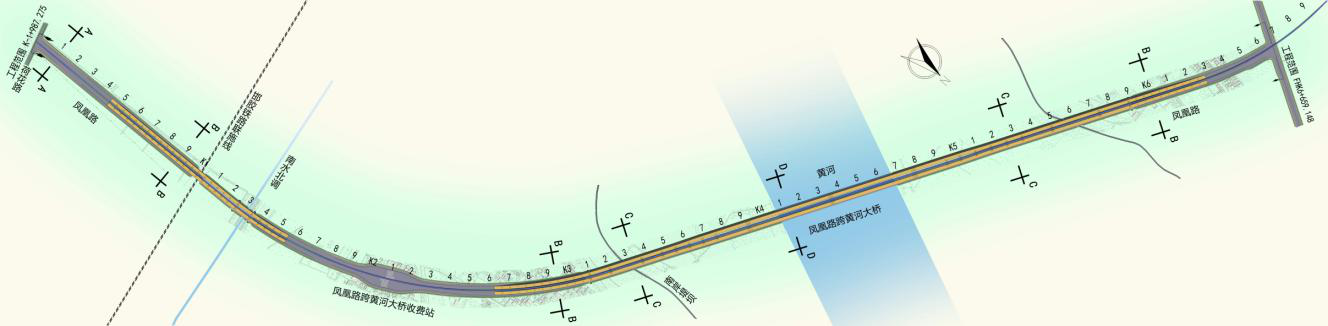 鳳凰路北延工程位于濟(jì)南市歷城區(qū)、高新區(qū)、濟(jì)陽(yáng)縣,路線南起壩王路與荷花路交叉口,接現(xiàn)狀壩王路,依次跨越邯膠鐵路聯(lián)絡(luò)線、南水北調(diào)工程濟(jì)東明渠后繼續(xù)往北,在小河套村向西北方向延伸,跨越黃河后,終點(diǎn)位于遠(yuǎn)期規(guī)劃主干路與G220交叉口處。項(xiàng)目全長(zhǎng)6659.2米,其中,黃河特大橋長(zhǎng)度為3668米,兩端接線長(zhǎng)度為2991.2米,包括大橋1座,平面交叉2處,涵洞11道。