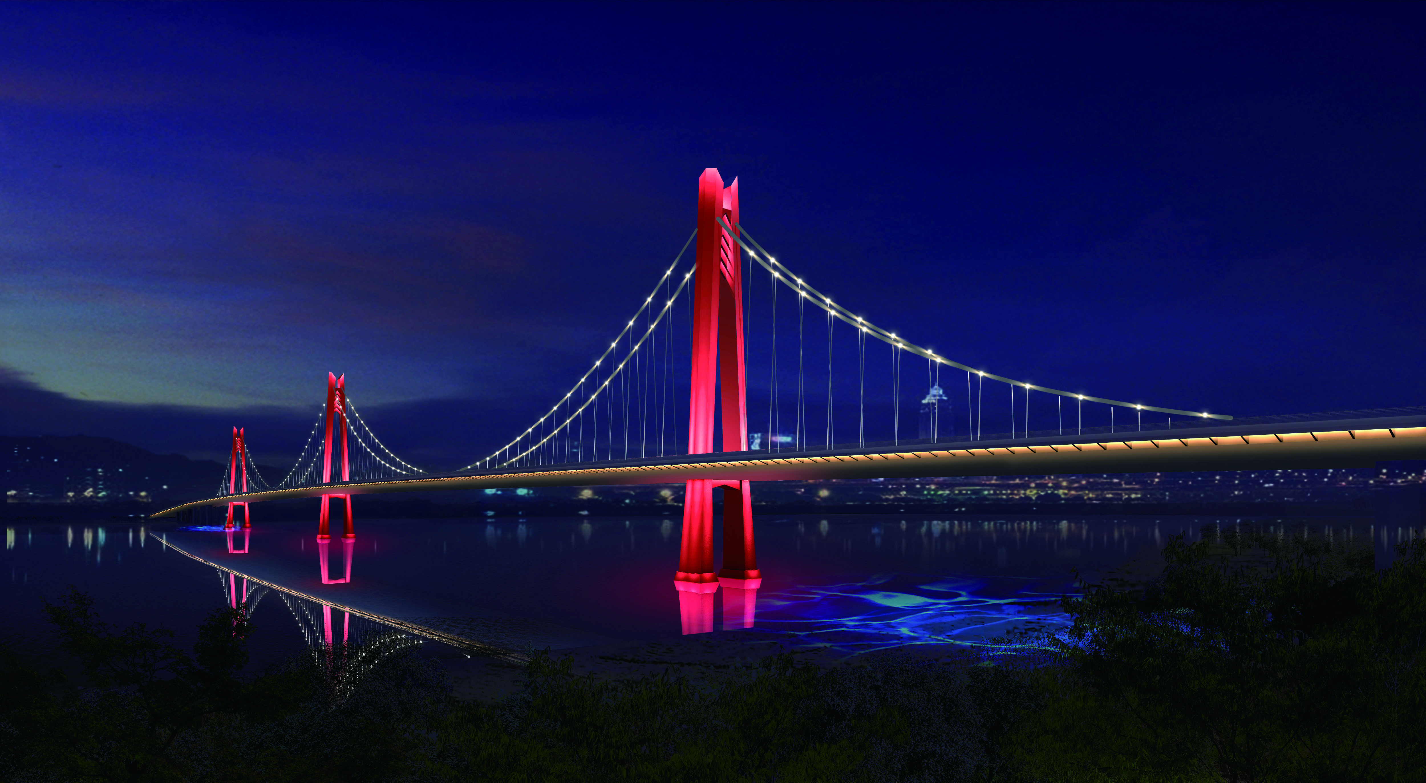 項(xiàng)目按照雙向八車道一級(jí)公路標(biāo)準(zhǔn)建設(shè),兼顧城市主干路功能,設(shè)計(jì)速度60公里/小時(shí),跨黃段橋梁范圍為公軌合建的橋梁形式,中間預(yù)留城市軌道交通空間,滿足城市軌道交通縱斷面相關(guān)技術(shù)條件。